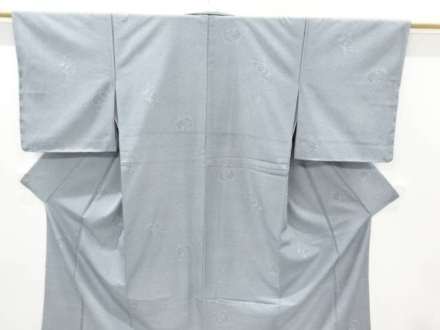 <着物サイズ>(単位:cm) 身丈146身丈(出し) 裄61裄(出し) 袖丈44袖丈(出し) 後幅28前幅23 つま下72 時代 現代(1989 - ) 状態 非常によい 素材 化繊 色目 ブルーグレー 【商品説明】衿は広衿です。