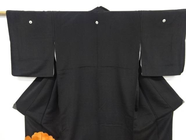 <着物サイズ>(単位:cm) 身丈165身丈(出し) 裄65裄(出し) 袖丈47.5袖丈(出し) 後幅 前幅 つま下 状態 よい 素材 正絹 色目 黒 技法 刺繍 【商品説明】共八掛で柄入りです。