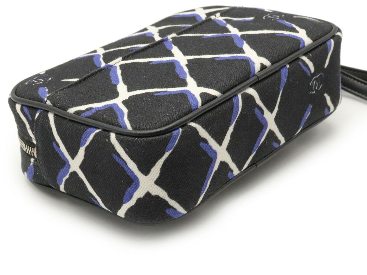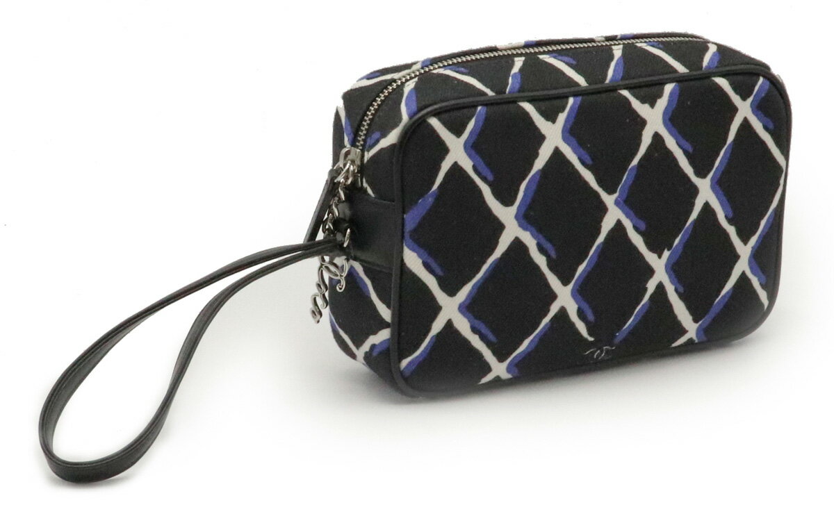 【バッグ】CHANEL シャネル ココマーク ポーチ 化粧ポーチ マルチポーチ キャンバス レザー ブラック 黒 ホワイト 白 ブルー 青 【中古】